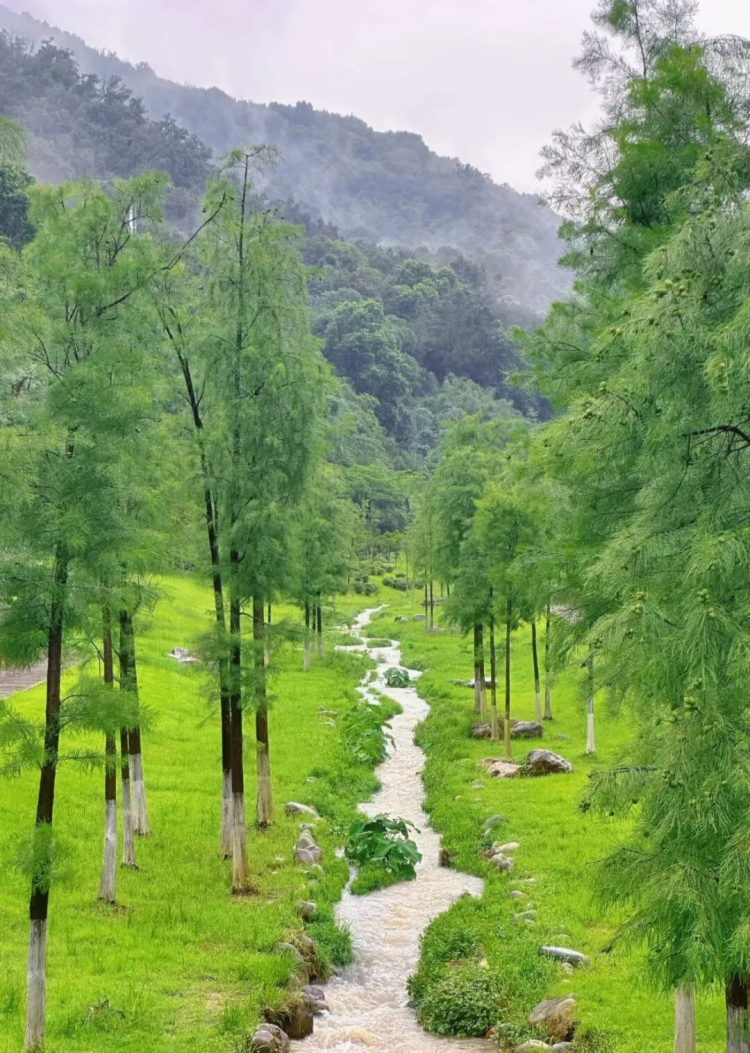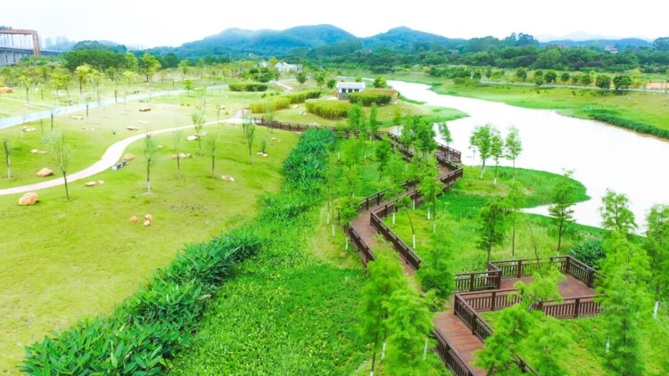 류사허(流沙河) 벽도(碧道)는 지식도시 다펀웨이산(大盆围山) 자락에 자리해 있다. 이곳은 식생이 무성하고 경치가 수려해 황푸의 '나라티(那拉提, 중국 신장의 유명 초원 경관지)'라 불린다.